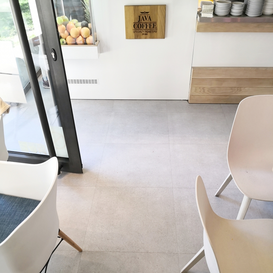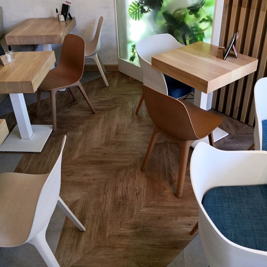 Kolekcija Aspecta One je odabrana kao pravo rešenje s obzirom da omogućava pod koji je izdržljiv, realnog izgleda drveta, znatno topliji od keramike i podjednako jednostavan za održavanje kao keramika. Zahvaljujući širokom izboru realnih dezena drveta sa bogatom reljefnom strukturom i realnom izgledu betona naše rešenje je prihvaćeno kao najbolje. Upotrebom inovativnih materijala Mapei Planiprep Remove 4LVT u pripremi podloge pod u lokalu je moguće vratiti u prethodno stanje bez oštećenja postojeće keramike.