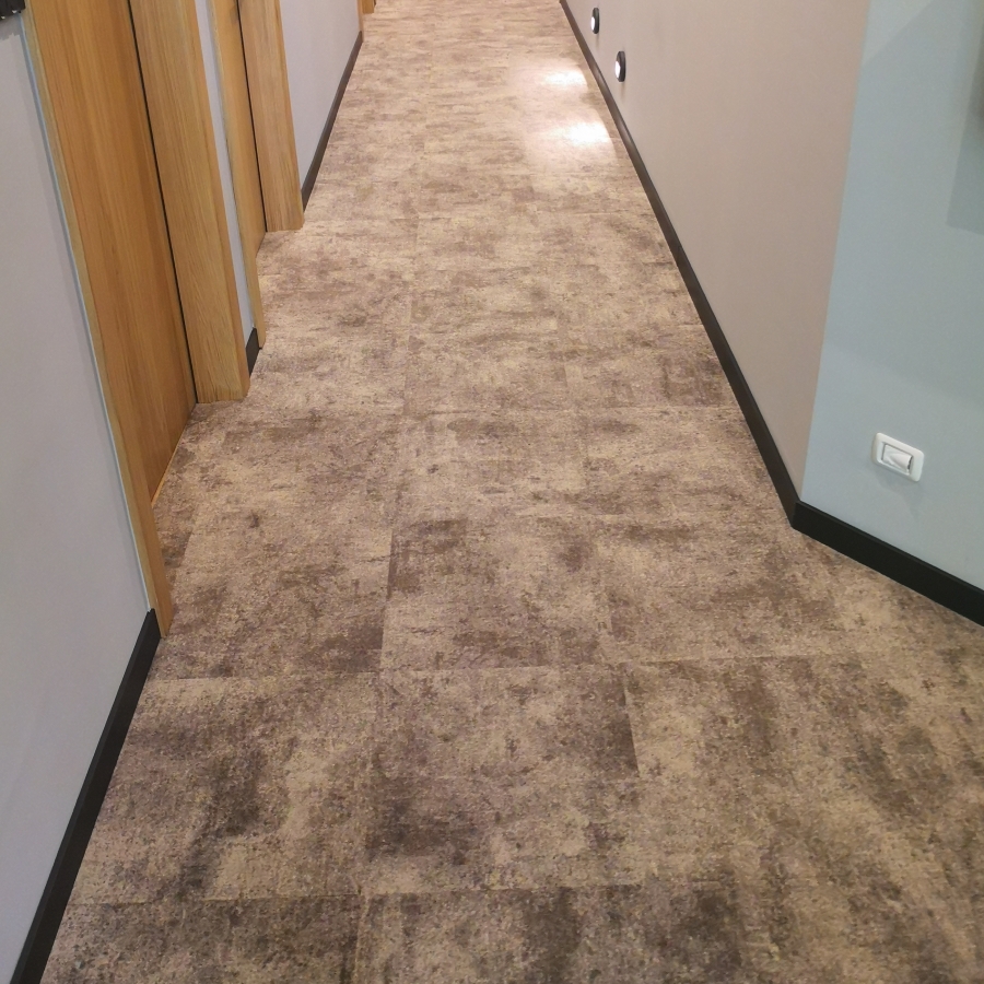 U saradnji sa arhitektom kao pravo rešenje koje zadovoljava sve gore navedene kriterijume, iz našeg širokog asortimana, odabran je tepison u pločama Graphite. Na sve gore navedeno, ostvaren je i dodatni benefit za Investitora imajući u vidu da odabrano modularno rešenje poda omogućava i do 4 puta brže renoviranje (u odnosu na klasična rešenja podnih obloga) kada za to dođe potreba.
