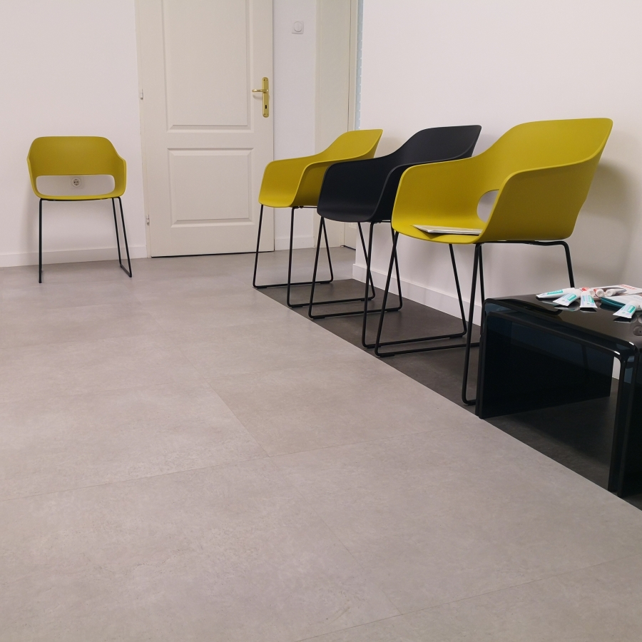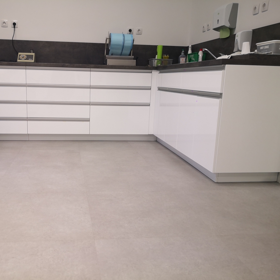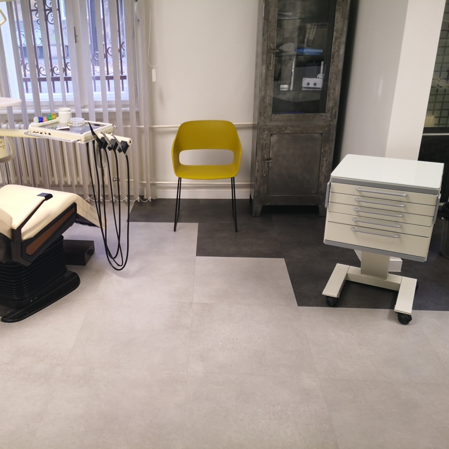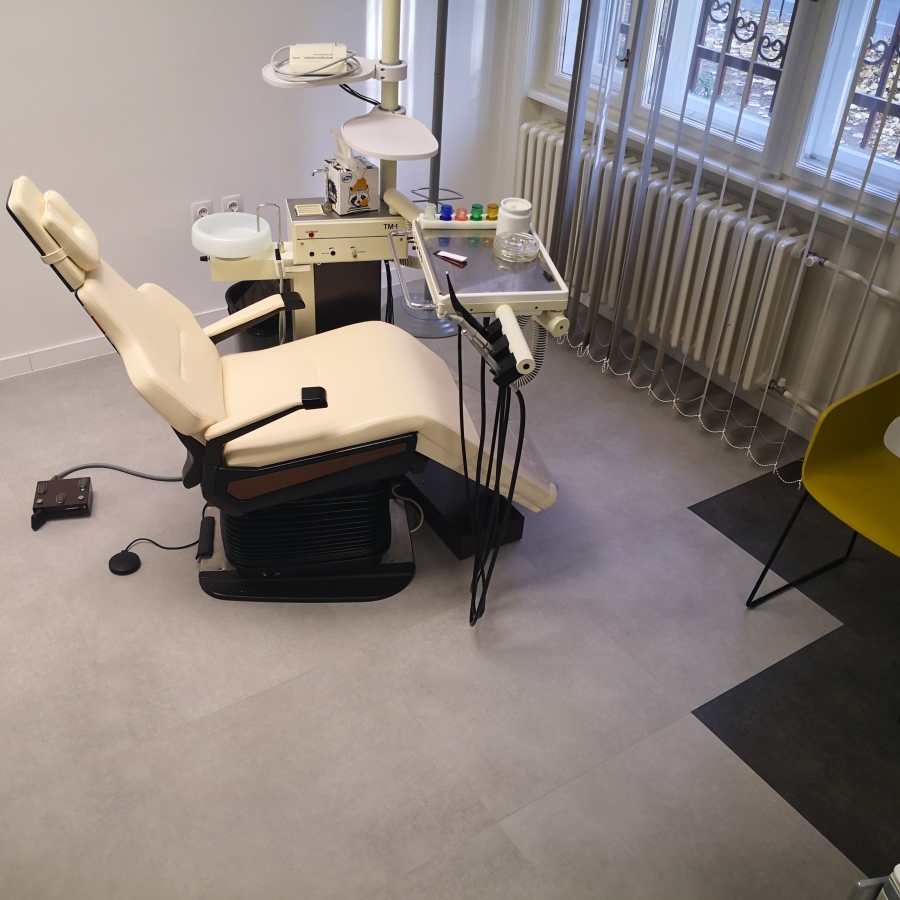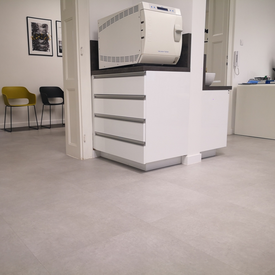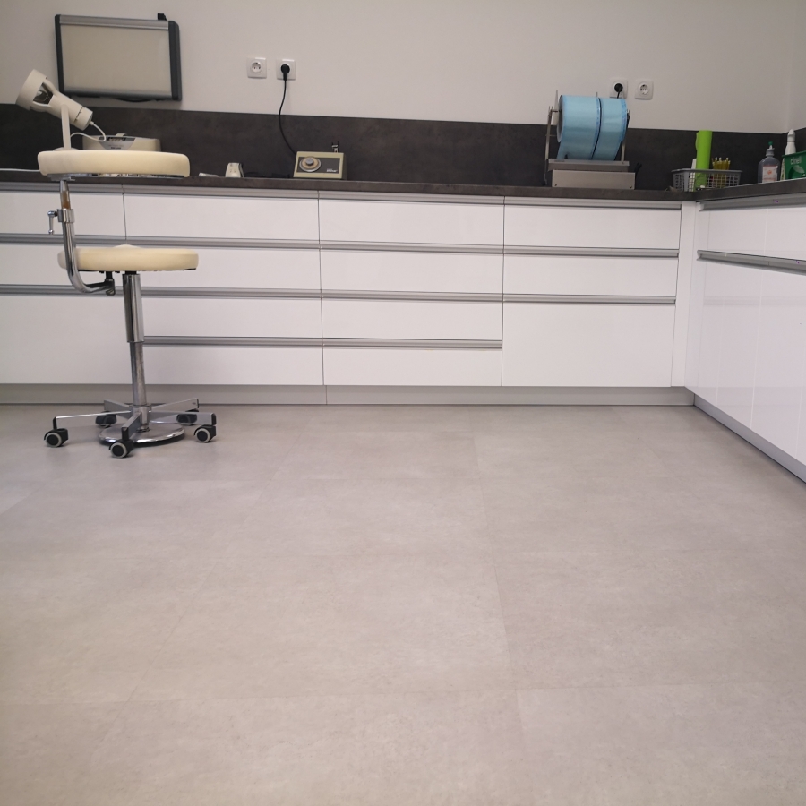 Ugledna Novosadska stomatološka ordinacija Dentina se prilikom preseljenja u novi objekat dvoumila između klasične medicinske podne obloge i modernije LVT opcije koja će izgledati luksuznije od klasičnog poda koji viđamo u medicinskim ustanovama. Podna obloga koja se koristi u medicini mora da zadovolji stroge zahteve u vezi izdržljivosti, higijene i požarne zaštite, kao i da ima određena toplotna svojstva kako bi zubarima i osoblju bilo udobno da rade. Klijent se odlučio za modernije rešenje u vidu luskuznih vinil ploča Aspecta ONE koje su pogodne za upotrebu u medicinskim ustanovama a pružaju dizajnerski pristup i slobodu u kreiranju enterijera za razliku od klasičnih vinilnih podova u rolnama koje obično viđamo u ustanovama ovog tipa. Sa ovakvim podom dobijamo novu, humaniju i luksuzniju dimenziju izgleda medicinskih ustanova. Higijenski aspekti su zaokruženi sa soklama od polistirena koji ima antibakterijska i antifungicidna svojstva.