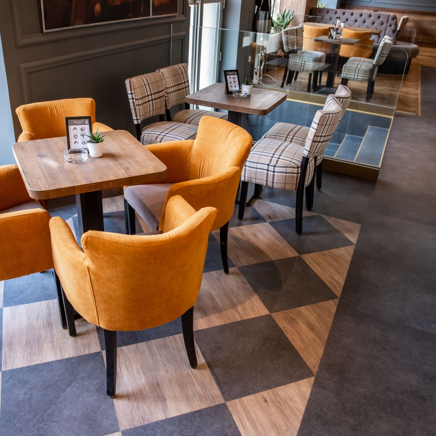 Veoma rado smo prihvatili izazov da sa našim proizvodima učestvujemo u kreiranju ovog jedinstvenog enterijera. Upotrebljeno je nekoliko dezena proizvoda Aspecta One kako bi dobili unikatni izgled poda, a naročito je zanimljiv vizuelni efekat spoja tradicionalnih i modernih materijala u delu gde se stari drveni pod spaja sa LVT podom. Slike govore više od reči...