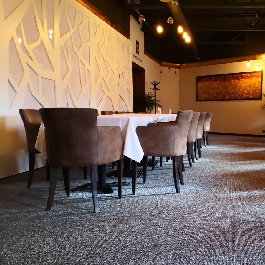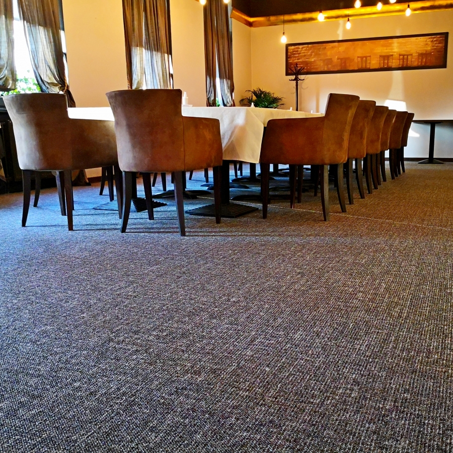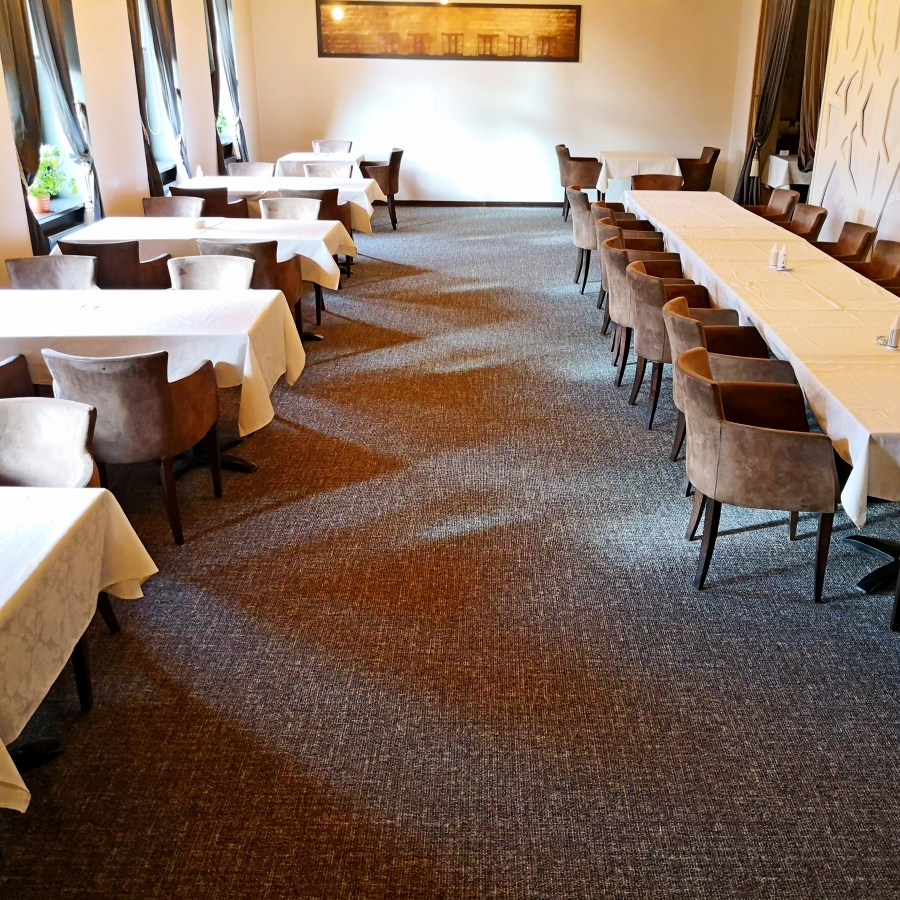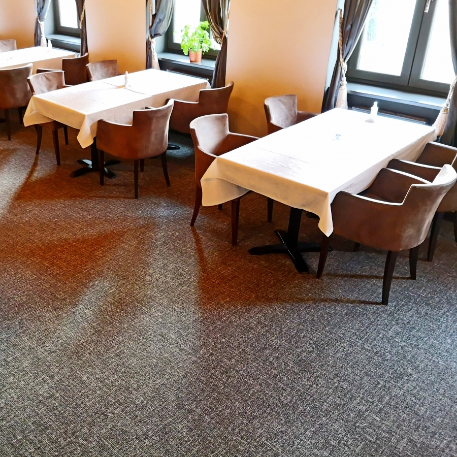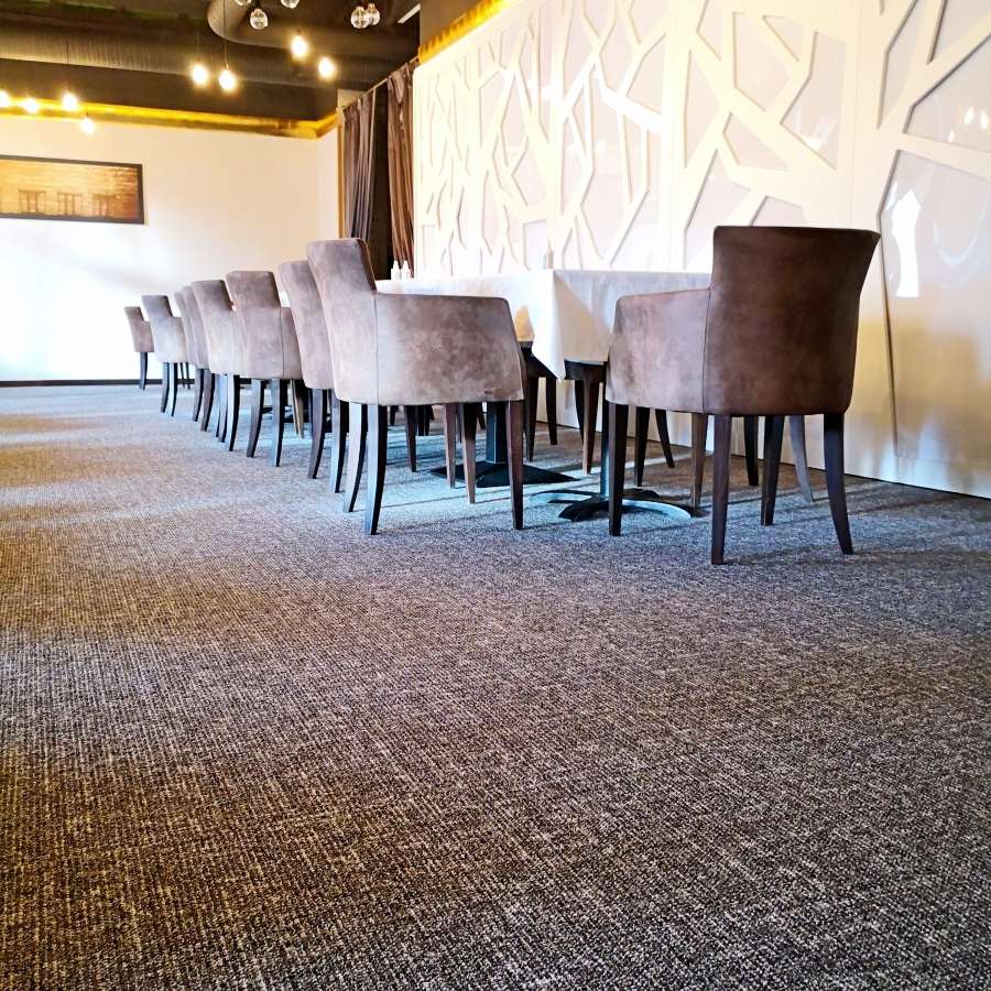 Novi restoran na dobro poznatoj lokaciji u centru Novog Sada sa ekskluzivnom ponudom tradicionalnih jela serviranih na moderan način. Prilikom renoviranja želja Klijenta je bila da "utopli" postojeću kongresnu salu i istovremeno obezbedi bolju akustiku u prostoru imajući u vidu da se iznad kongresne sale nalaze smeštajni kapaciteti. S obzirom da je u pitanju komercijalni objekat potrebno je voditi računa i o požarnim standardima. Kao najbolje rešenje za identifikovane potrebe Klijenta odabran je tepison u pločama koji pored značajno bolje akustike prostoru donosi i određenu dozu luksuza i ekskluzivnosti, a zahvaljujući svojoj modularnosti omogućava brzu i laku ugradnju i jednostavnu zamenu pojedinih modula u slučaju potrebe.