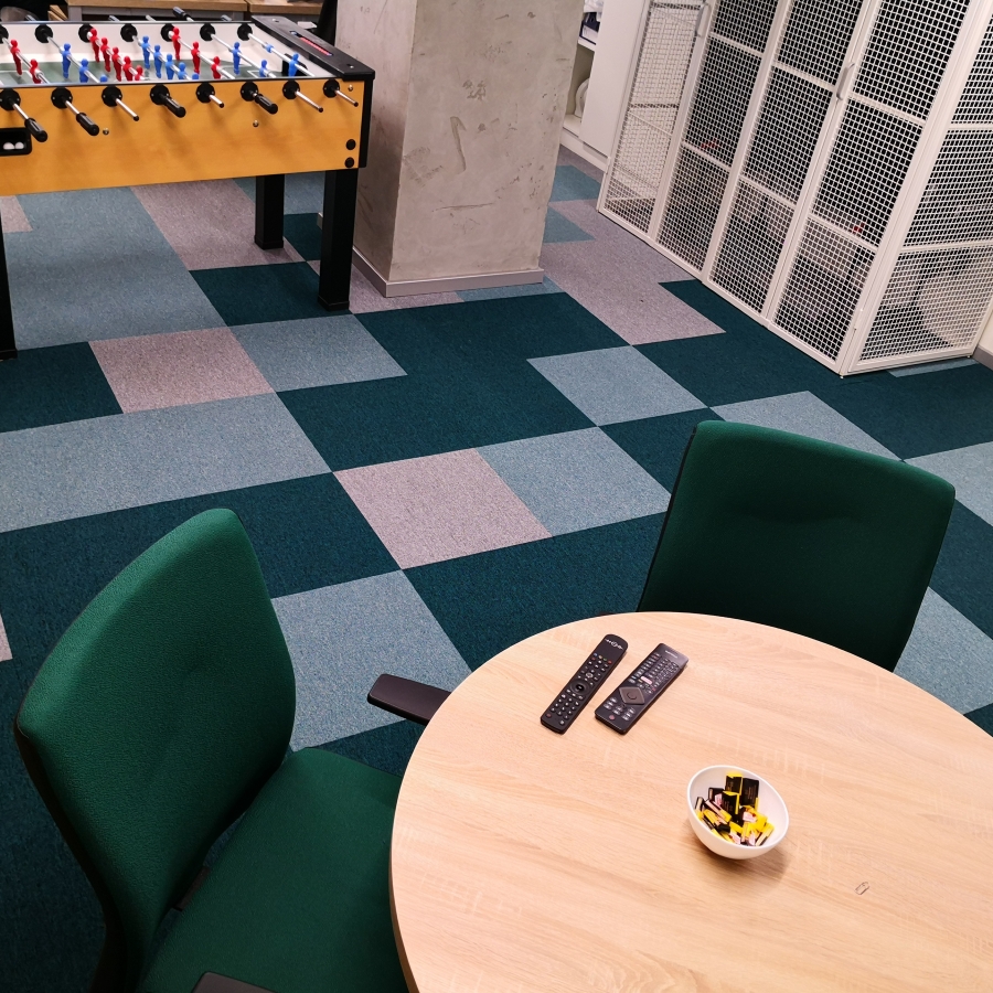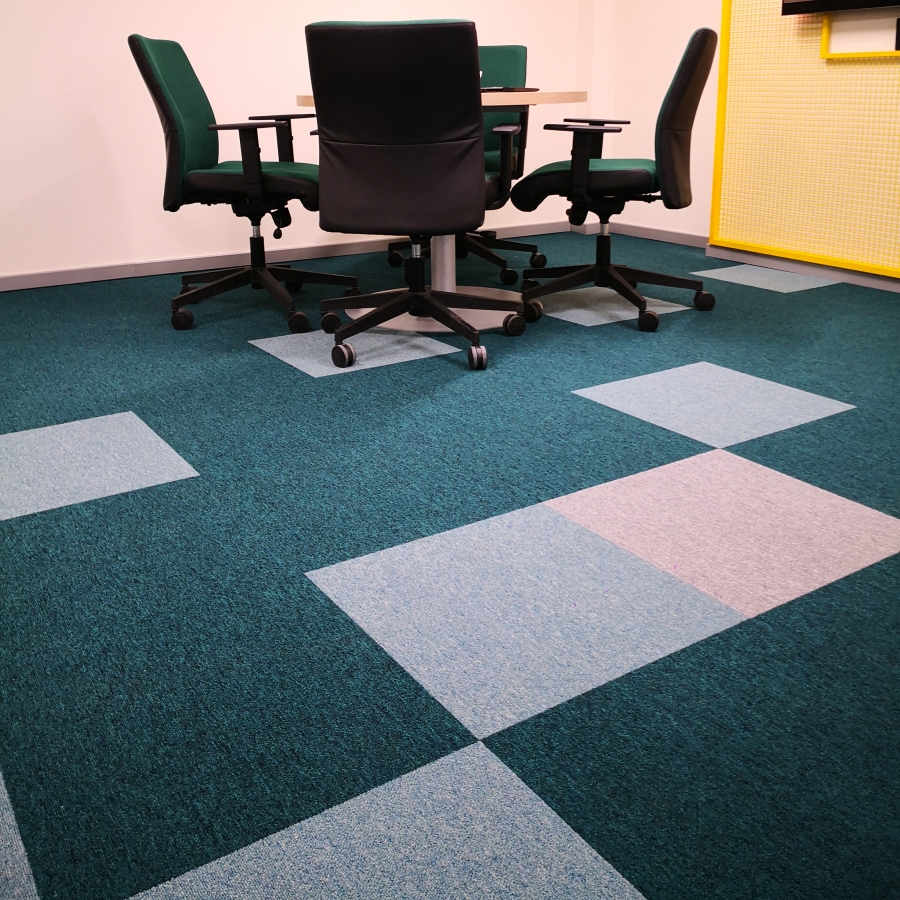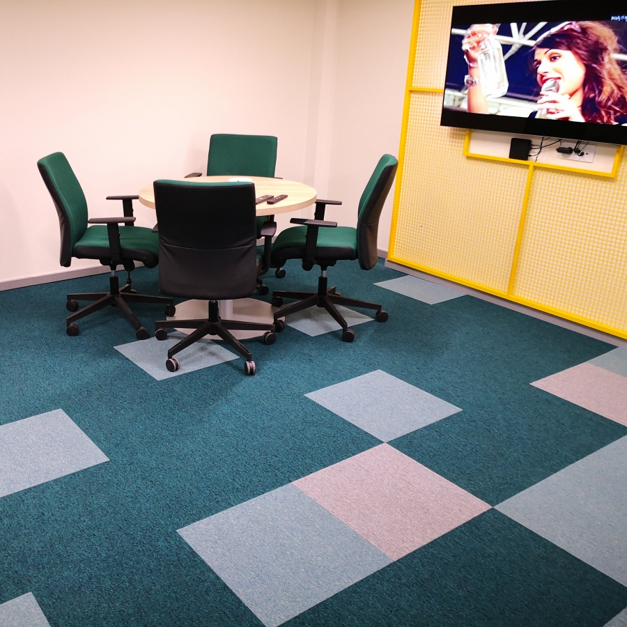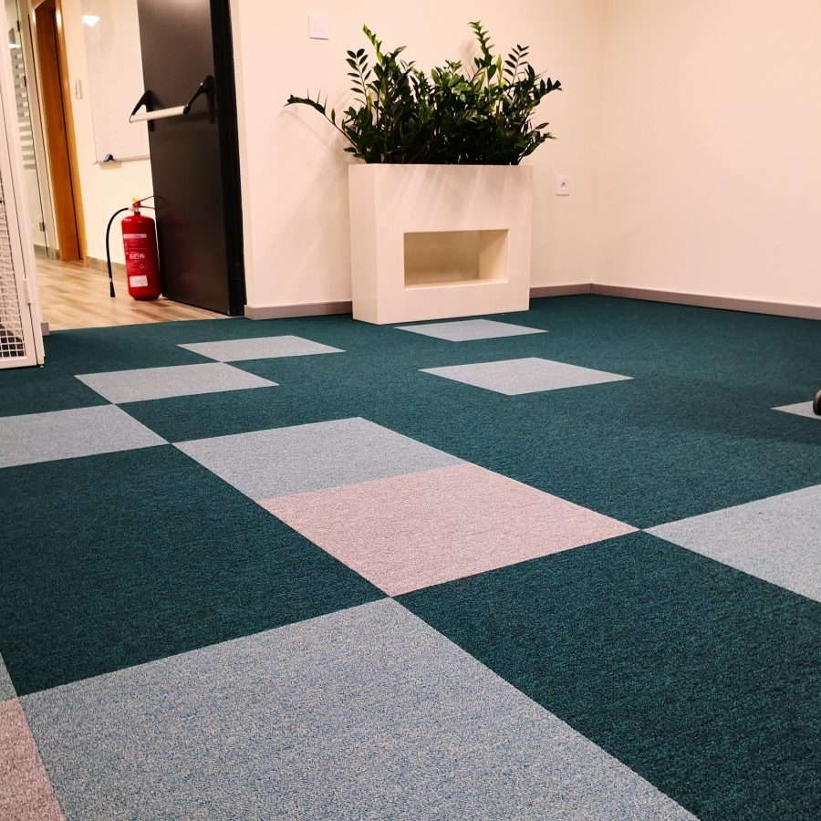 TC Promenada nam se obratila sa zahtevom za privođenje nameni postojećeg kancelarijskog prostora sa akcentom na kreiranje radnog okruženja koje će biti udobno i inspirativno za zaposlene. S obzirom da je u datom prostoru postojeća podna obloga keramika koja ne zadovoljava pre svega funkcionalne kriterijume u smislu akustike i toplote rešenje je pronađeno u modularnom tepisonu Creative Spark koji je predviđen za izuzetno visoku frekvenciju ljudi (klasa 33 - najviša klasa koju tepison može da dobije), ima sporogorivost veću od zakonskog minimuma za komercijalne objekte i zahavaljujući efikasnoj kombinaciji tri boje stvara enterijer koji je savremen i živ. Dodatni benefit koji Klijent ostvaruje upotrebom tepisona u pločama jeste jednostavno održavanje i laka zamena ukoliko dođe do trajnih zaprljanja i oštećenja.
